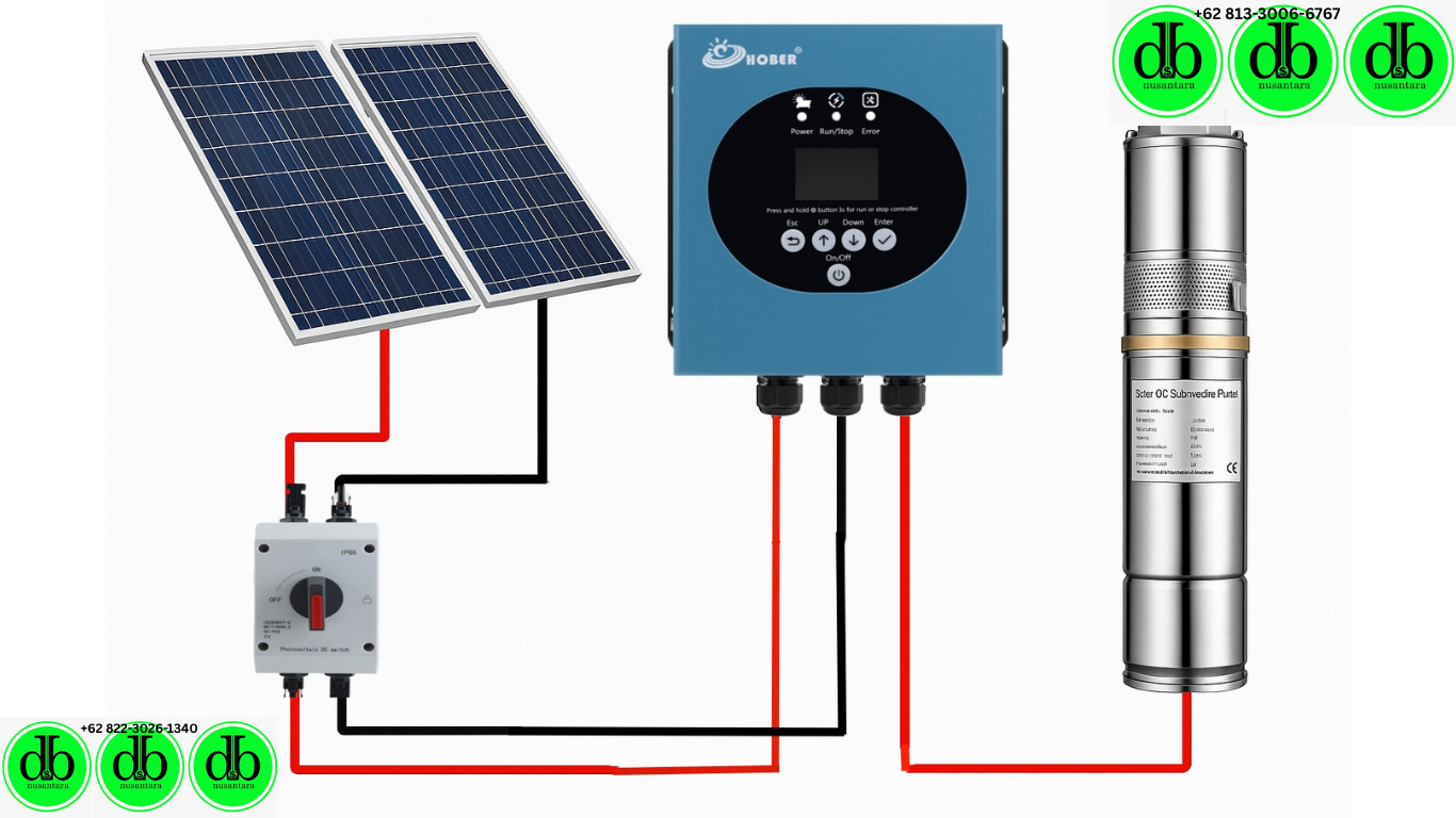 Panel surya menangkap energi matahari dan mengalirkannya ke kontroler. Kontroler mengatur daya agar sesuai dengan kebutuhan pompa. Selanjutnya, motor pompa mengangkat air dari sumber menuju tandon atau jaringan distribusi. Sistem ini tidak memerlukan baterai besar untuk operasi harian, sehingga biaya investasi lebih efisien.